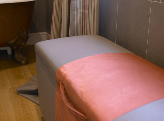 Toy storage ottoman in ultrasuede and