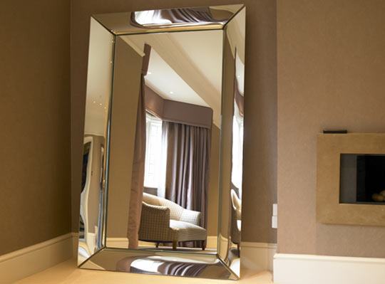 Philippe Starck mirror, re-upholstered antique sofa in Jim Thompson silk.